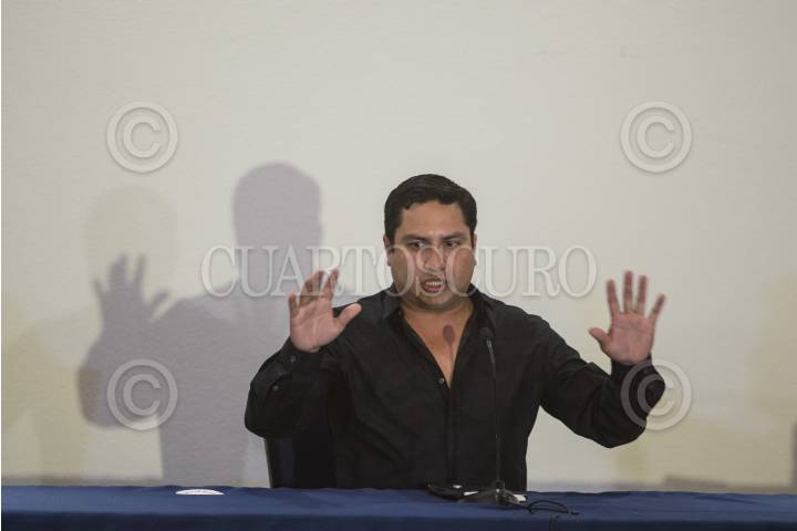 CIUDAD DE MÉXICO, 10AGOSTO2017.- El cantante y músico Julión Álvarez ofreció una conferencia de prensa luego de que el Departamento del Tesoro de los Estados Unidos lo acusara de ser prestanombres del narcotraficante Raúl Flores Hernández. Con esta acción las cuentas bancarias del interprete están congelados hasta que se investigue si son ciertas estas acusaciones, también le fue cancelada su visa norteamericana. FOTO: TERCERO DÍAZ /CUARTOSCURO.COM