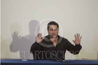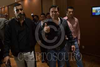 CIUDAD DE MÉXICO, 10AGOSTO2017.- El cantante y músico Julión Álvarez ofreció una conferencia de prensa luego de que el Departamento del Tesoro de los Estados Unidos lo acusara de ser prestanombres del narcotraficante Raúl Flores Hernández. Con esta acción las cuentas bancarias del interprete están congelados hasta que se investigue si son ciertas estas acusaciones, también le fue cancelada su visa norteamericana. FOTO: TERCERO DÍAZ /CUARTOSCURO.COM
