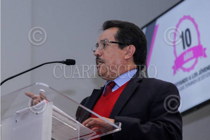 CIUDAD DE MÉXICO, 11AGOSTO2017.- José Ramón Amieva Gálvez, secretario de Desarrollo Social de la Ciudad de México (CDMX); Mauricio Rodríguez Alonso, secretario de Educación de la capital, y Karen Quiroga, directora del programa "Prepa Sí", durante la entrega de reconocimiento y laptops a alumnos de excelencia del programa. FOTO: GALO CAÑAS /CUARTOSCURO.COM