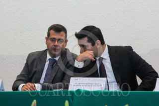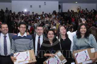 CIUDAD DE MÉXICO, 11AGOSTO2017.- José Ramón Amieva Gálvez, secretario de Desarrollo Social de la Ciudad de México (CDMX); Mauricio Rodríguez Alonso, secretario de Educación de la capital, y Karen Quiroga, directora del programa "Prepa Sí", durante la entrega de reconocimiento y laptops a alumnos de excelencia del programa. FOTO: GALO CAÑAS /CUARTOSCURO.COM
