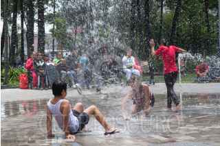 CIUDAD DE MÉXICO, 12AGOSTO2017.- Niños juegan a mojarse en una fuente de Alameda Central. FOTO: TERCERO DÍAZ /CUARTOSCURO.COM