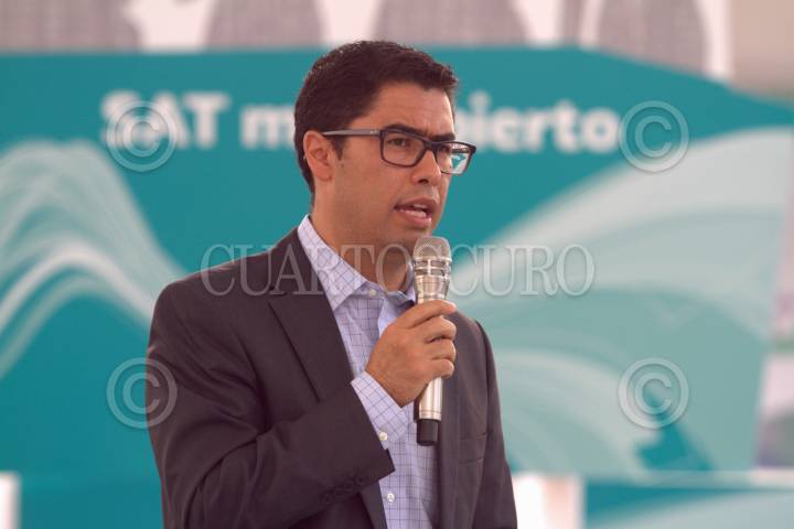 CIUDAD DE MÉXICO, 14AGOSTO2017.- Osvaldo Santín Quiroz, Jefe del Sistema de Administración Tributaria (SAT) durante la conmemoración de los 20 años del SAT y presentaron el programa el "SAT Más Abierto". FOTO: MOISÉS PABLO /CUARTOSCURO.COM