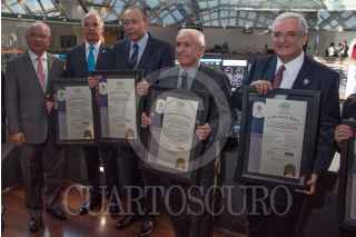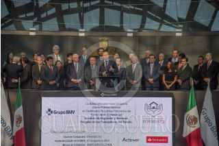 CIUDAD DE MÉXICO, 15AGOSTO2017.- José Reyes Baeza Terrazas, Director general del ISSSTE; Ricardo Luis Godina Huerta, vocal ejecutivo de FOVISSTE, y el senador Joel Ayala Almeida, durante la colocación de los primeros certificados bursátiles fiduciarios del Fondo de la Vivivienda del ISSSTE (FOVISSSTE), por un monto de 1,186 millones de udis equivalentes a 6 mil 845 millones de pesos. FOTO: MARIO JASSO /CUARTOSCURO.COM