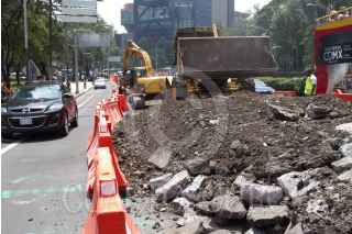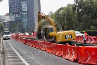 CIUDAD DE MÉXICO, 15AGOSTO2017.- Continúa la construcción de la Línea 7 del Metrobus sobre Paseo de la Reforma, las máquina se encuentran trabajando en el tramo del cruce con el Circuito Interior. FOTO: MOISÉS PABLO /CUARTOSCURO.COM