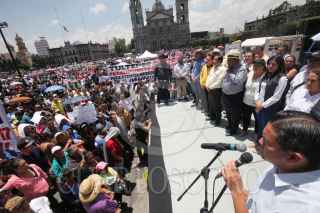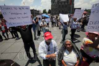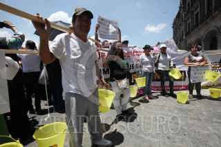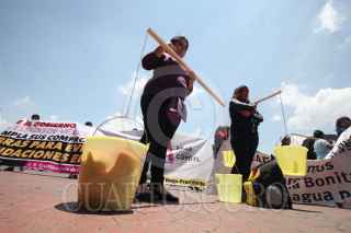 TOLUCA, ESTADO DE MÉXICO, 15AGOSTO2017.- Habitantes de los municipios de Nezahualcóyotl, Tultepec, Nextlalpan, Ocuilán y Jocotitlán se manifestaron frente al Palacio de Gobierno, para que el gobernador Eruviel Ávila cumpla con los compromisos de obra hidráulica y abastecimiento de agua en sus comunidades. Los inconformes bloquearon la avenida Lerdo de Tejada con mantas y cubetas para pedir el suministro del vital líquido, a la cabeza de la manifestación estuvo el presidente municipal Juan Hugo de la Rosa. FOTO: ARTEMIO GUERRA BAZ /CUARTOSCURO.COM
