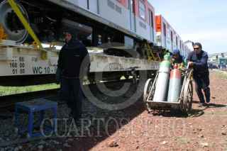 Ciudad Sahagún, Hidalgo, 13 JULIO 2004.- El primer tren que entrará en funcionamiento y que será destinado a la línea 2 del metro, fue entregado por la planta Bombardier al jefe de gobierno. El proyecto que espera entregar 45 trenes concluirá a mediados del 2005. FOTO: Sandra Perdomo/CUARTOSCURO.COM