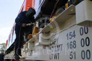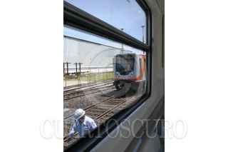 Ciudad Sahagun, Hidalgo, 13 JULIO 2004.- Frente del tren construido por mexicanos y manufacturado por la empresa Bombardier Transportation. Primer tren que dará una nueva imagen de la Linea 2 del metro de la ciudad de México. FOTO: Sandra Perdomo/CUARTOSCURO.COM