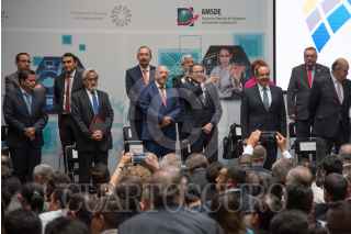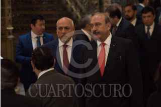 CIUDAD DE MÉXICO, 16AGOSTO2017.- Enrique Cabrero Mendoza, Director General del CONACYT, y José Ignacio Peralta Sánchez, Gobernador del Estado de Colima, durante el Lanzamiento Nacional de la Convocatoria 2018 del Programa de Estímulos a la Innovación (PEI), celebrado en el Palacio Postal. La convocatoria adelanta un incremento del número de becas que se otorgarán para estudiantes de posgrado. FOTO: MARIO JASSO /CUARTOSCURO.COM