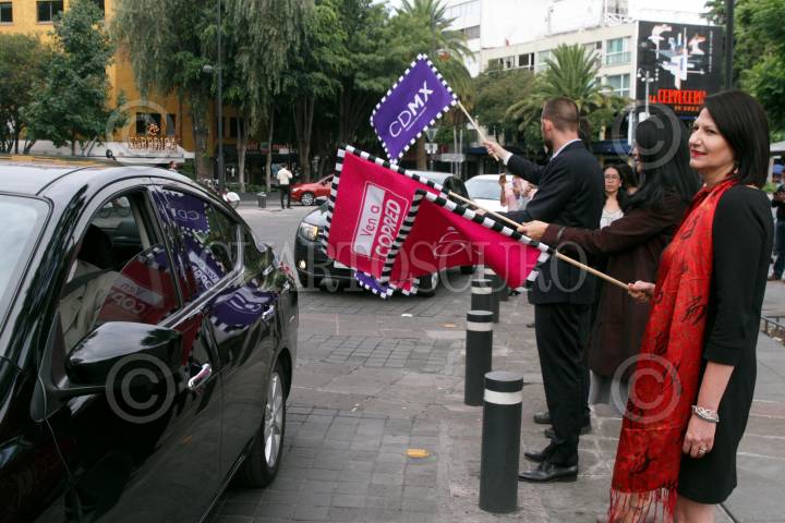 CIUDAD DE MÉXICO, 17AGOSTO2017.- Alejandro Sisniega Pérez, director de Cafiby México, durante el banderazo de salida de las unidades de la empresa Cafiby, las cuales se unen a un programa de lucha en contra de la discriminación. La titular de la COPRED señaló que ante diversas denuncias de personas de grupos vulnerables de haber sido discriminados al intentar utilizar este tipo de servicios de transporte, hizo un llamado para que las empresas proveedoras se sumarán a este esfuerzo de salvaguardar los derechos de este segmento de lo población. FOTO: MOISÉS PABLO /CUARTOSCURO.COM