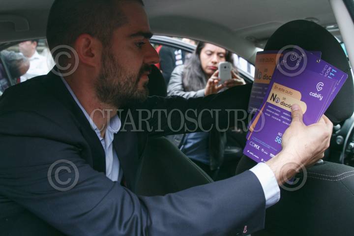 CIUDAD DE MÉXICO, 17AGOSTO2017.- Alejandro Sisniega Pérez, director de Cafiby México, durante el banderazo de salida de las unidades de la empresa Cafiby, las cuales se unen a un programa de lucha en contra de la discriminación. La titular de la COPRED señaló que ante diversas denuncias de personas de grupos vulnerables de haber sido discriminados al intentar utilizar este tipo de servicios de transporte, hizo un llamado para que las empresas proveedoras se sumarán a este esfuerzo de salvaguardar los derechos de este segmento de lo población. FOTO: MOISÉS PABLO /CUARTOSCURO.COM