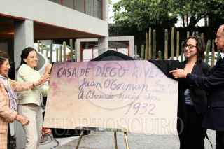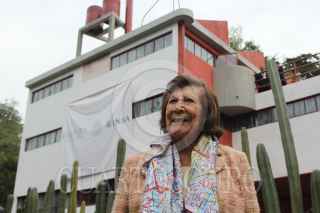 CIUDAD DE MÉXICO, 17AGOSTO2017.- Guadalupe Rivera, durante la develación de la firma autografa de Juan O'Gorman en la fachada sur de la Casa Estudio de Diego Rivera. FOTO: GALO CAÑAS /CUARTOSCURO.COM
