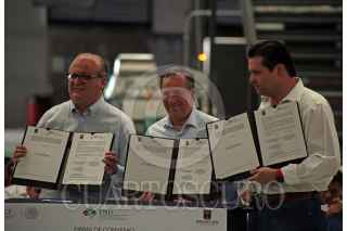 YACAPIXTLA, MORELOS, 17AGOSTO2017.- Este medio día el secretario de Hacienda y Crédito Público, José Antonio Meade Kuribreña firmó el convenio entre la Financiera Nacional de Desarrollo Rural, Forestal y Pesquero (FND) y el gobierno de Morelos, en el Agroparque de este municipio. El secretario estuvo acompañado del gobernador de Morelos, Graco Ramirez Abreu y el director de la FND, Mario Zamora Gastélum. FOTO: MARGARITO PÉREZ RAMÍREZ /CUARTOSCURO.COM