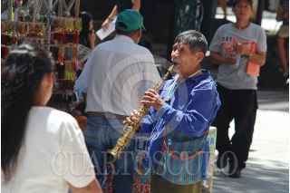 CHILPANCINGO, GUERRERO, 18AGOSTO2017.- Un hombre que toca un instrumento de aire en el andador Zapata a cambio de monedas como forma de sustento. FOTO: JOSÉ I. HERNÁNDEZ /CUARTOSCURO.COM