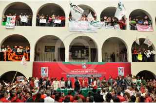 TOLUCA, ESTADO DE MÉXICO, 18AGOSTO2017.- La Comisión Estatal de Procesos Internos durante la Sesión de Registro del Proceso interno para la elección extraordinaria de los titulares de la Presidencia y de la Secretaría General del CDE del PRI en el Estado de México recibieron el registro de Ernesto Nemer Álvarez y Brenda Alvarado Sánchez, quienes se registraron como la fórmula única. FOTO: ARTEMIO GUERRA BAZ / CUARTOSCURO.COM