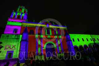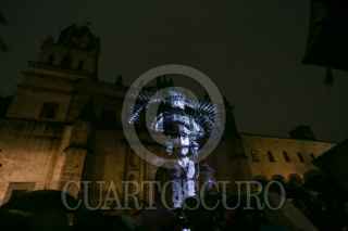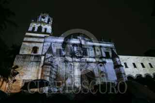 CIUDAD DE MÉXICO, 18AGOSTO2017.- En el templo de San Juan Bautista del centro de Coyoacán, se proyectó "Bordados de luz, historias de coyoacán", propuesta de narrativa audiovisual, ganadora del Mapping Challenge México organizado por la marca epson y la delegación Coyoacán. FOTO: ADOLFO VLADIMIR /CUARTOSCURO.COM