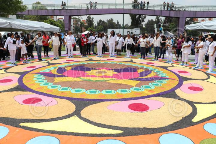CIUDAD DE MÉXICO, 19AGOSTO2017.- Centenares de personas acudieron a la inauguración de las 29 mandalas monumentales plasmadas en las paredes de los edificios de la Unidad Habitacional Vicente Guerrero así mismo participaron en una meditación masiva realizado en el camellón de Periferico y Eje 6. FOTO: SAÚL LÓPEZ /CUARTOSCURO.COM