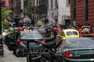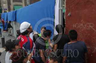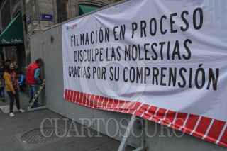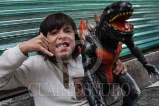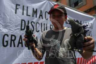 CIUDAD DE MÉXICO, 20AGOSTO2017.- Curiosos y admiradores de Godzilla observan la filmación de la película del monstruo cinematográfico, la cual se realiza en calles del Centro Histórico. FOTO: ISAAC ESQUIVEL /CUARTOSCURO.COM