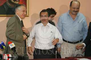 México, D. F. 15 Julio 2004.- Florencio Salazar Adame, titular de la secretaria de la reforma agraria, Heladio Ramirez, lider de la confederacion nacional campesina y el diputado César Duarte sostuvieron una reunión en la sede de la CNC. FOTO: Nelly Salas/CUARTOSCURO.COM