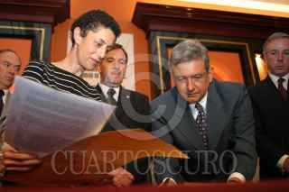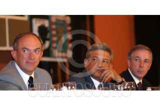 México, D.F. 15 JULIO 2004.- José Luis Menchelli, presidente saliente, Andrés Manuel López Obrador, jefe de Gobierno del D.F. y Gonzálo Brockmann, presidente entrante de la Asosiación de Hoteles de la Cd. de México en el evento de la toma de protesta de la nueva mesa directiva hotelera 2004-2006. FOTO: Sandra Perdomo/CUARTOSCURO.COM