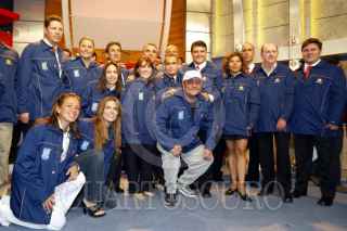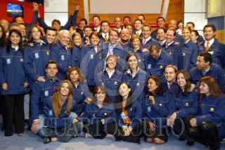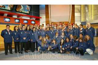 MEXDF15JULIO2004.- Fue presentado el equipo de reporteros, comentaristas, expertos y comicos que desplazara Televisa para la cobertura de las olimpidas en Grecia. El presidente de la empresa , Emilio Azcarraga Jean les deseo suerte en su labor. FOTO: Rita Canto/CUARTOSCURO.COM