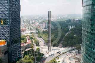 CIUDAD DE MÉXICO., 23AGOSTO2017.- Vista de la torre Bancomer, la estela de la luz y la torre Mayor, al fondo el bosque de Chapultepec durante un día poco contaminado. FOTO: DIEGO SIMÓN SÁNCHEZ /CUATOSCURO.COM