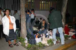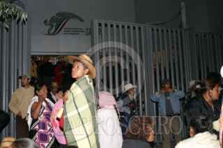 México, D.F. 15 JULIO 2004.- Los campesinos oaxaqueños que durante 15 días aproximadamente se plantaron a las puertas de Sagarpa abandonaron la secretaria debido a la presencia de elementos de la PFP. FOTO: Sandra Perdomo/CUARTOSCURO.COM