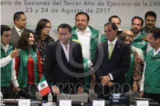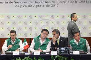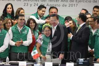 CIUDAD DE MÉXICO., 23AGOSTO2017.- Miguel Ángel Osorio Chong, Secretario de Gobernación asistió a la inauguración de la Plenaria del Partido Verde Ecologista de México realizado en las instalaciones de la Cámara de Senadores. FOTO: SAÚL LÓPEZ /CUATOSCURO.COM