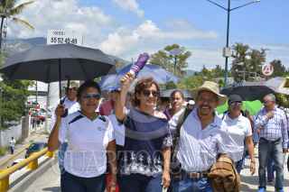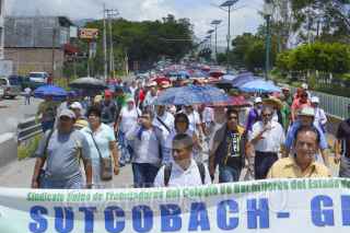 CHILPANCINGO, GUERRERO.23AGOSTO2017.- Integrantes del Sindicato Único de Trabajadores del Colegio de Bachilleres (SUTCOBACH) marcharon de la alameda Granados Maldonado hasta el Palacio de Gobierno de la entidad, para exigir sus derechos laborares, respeto al contrato colectivo y al pago de prestaciones en la nueva reforma educativa. La movilización la encabeza el secretario del Sindicato Alfredo Ramírez Bravo. FOTO: JOSÉ I. HERNÁNDEZ / CUARTOSCURO.COM