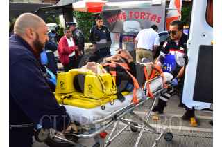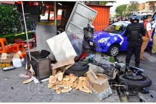 CIUDAD DE MÉXICO, 23AGOSTO2017.- Un motociclista de la Secretaría de Seguridad Pública capitalina fue arrollado por un conductor de una aseguradora que no respetó las señales de tránsito sobre la avenida Chapultepec y doctor Lucio. El policia salió proyectado a un puesto de tortas, porteriormente fue trasladado a un nosocomio con heridas graves. FOTO: ARMANDO MONROY /CUATOSCURO.COM