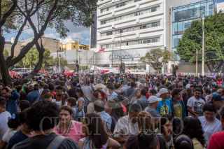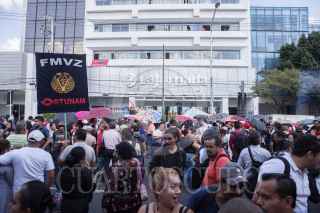CIUDAD DE MÉXICO, 24AGOSTO2017.- Decenas de integrantes de diferentes sindicatos nacionales y extranjeros, se manifestaron en las instalaciones del diario La Jornada, en solidaridad a los trabajadores del Sitrajor, y en apoyo a Judith Calderón, secretaría general y líder del Sitrajor, que fue despedida hace unos días y enfrenta una demanda penal en su contra, al igual que su hijo Alejandro Caballero Calderón, joven de 20 años quien se había solidarizado con la lucha de su madre y los trabajadores del medio. FOTO: TERCERO DÍAZ /CUATOSCURO.COM