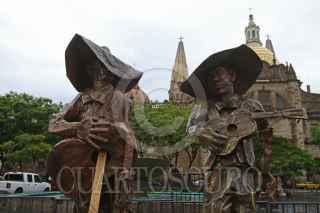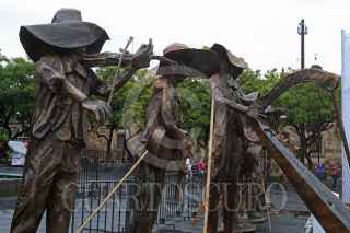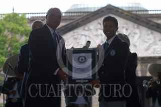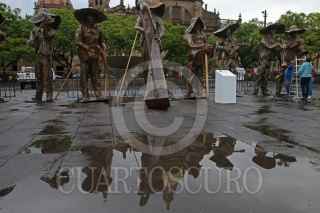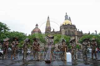 GUADALAJARA, JALISCO. 25AGOSTO2017.- Hoy a pesar de las condiciones climatológicas en la Plaza de la Liberación y el marco de la edición del XXIV Encuentro Internacional del Mariachi y la Charrería 2017 que se lleva año con año en la Perla Tapatía, se logro imponer el noveno Récord Guinnes, en esta ocasión por tener la escultura de papel maché mas grande del mundo, misma que consta de ocho figuras representando un conjunto de mariachi con sus instrumentos. FOTO: FERNANDO CARRANZA GARCIA / CUARTOSCURO.COM