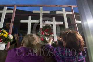 MONTERREY, NUEVO LEÓN, 25AGOSTO2017.- Familiares de las víctimas del Casino Royale, conmemoraron el 6to. aniversario del ataque realizando una misa y colocando flores en las afueras del lugar. FOTO: GABRIELA PÉREZ MONTIEL /CUARTOSCURO.COM