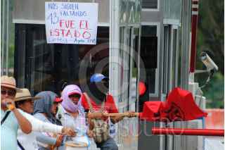 CHILPANCINGO, GUERRERO, 26AGOSTO2017.- La Asamblea Popular de los Pueblos de Guerrero (APPG), integrantes del Sindicato Único de Trabajadores del Colegio de Bachilleres (SUTCOBACH), profesores de la Coordinadora Estatal de Trabajadores de la Educación en Guerrero (CETEG) y una comisión de estudiantes de la normal rural Raúl Isidro Burgos de Ayotzinapa, tomaron la Caseta de cobro de peaje de Palo Blanco de la Autopista del Sol y dieron paso libre a los automovilistas. FOTO: JOSÉ I. HERNÁNDEZ / CUARTOSCURO.COM