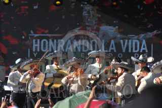 CIUDAD JUÁREZ, CHIHUAHUA, 28AGOSTO2017.- Grupos de mariachis, automóviles oldies, porristas, bailarines profesionales, rondallas, payasos, brake dance y botargas se integraron a la fiesta dedicada a la memoria del cantautor Juan Gabriel, quien siempre llevó a Juárez en sus canciones y conciertos, poniendo en alto el nombre de esta tierra que le vio nacer como artista. Juarenses y visitantes de otros estados aplauden y corean la música de la banda del municipio, cuyos integrantes tocaron la música del cantautor. FOTO: NACHO RUIZ /CUARTOSCURO.COM
