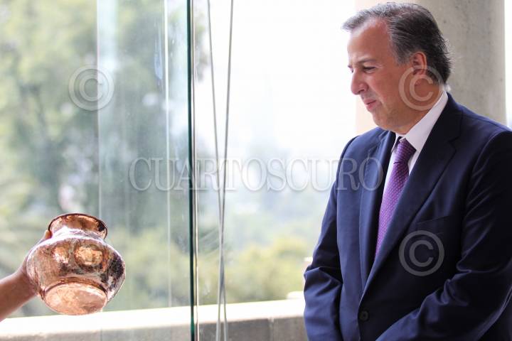 CIUDAD DE MÉXICO, 28AGOSTO2017.- José Antonio Meade Kuribreña, secretario de Hacienda y Crédito Público, y su esposa Juana Cuevas Rodríguez, al termino de la presentación del programa Pago en Especie, Los Grandes Maestros del Arte Popular, en el Alcázar del Castillo de Chapultepec. FOTO: GALO CAÑAS /CUARTOSCURO.COM