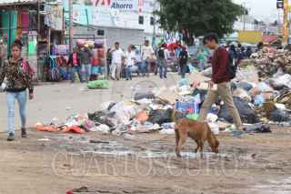 OAXACA, OAXACA,28AGOSTO2017.- Este lunes se cumplieron 10 días de que el tiradero municipal fue tomado por colonos de la agencia Vicente Guerrero perteneciente a la Villa de Zaachila, quienes impiden la entrada de los camiones recolectores, esto debido a un conflicto que sostienen con militantes del Frente Popular 14 de Junio. Los habitantes de esa localidad exigen al gobierno estatal la detención de los dirigentes de esa organización quienes se encuentran prófugos así como la expulsión de sus seguidores de la agencia municipal, por ello mantienen la toma del basurero para presionar a las autoridades. Esto ha ocasionado la acumulación de residuos en diversas calles de la capital del estado, principalmente cerca de los mercados. Ante esto locatarios de la Central de Abasto se manifestaron bloqueando el periférico de la capital y arrojando su basura a esta vía. FOTO: ARTURO PÉREZ ALFONSO/ CUARTOSCURO.COM