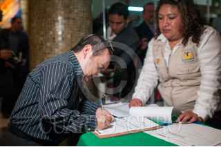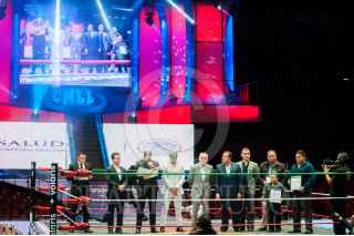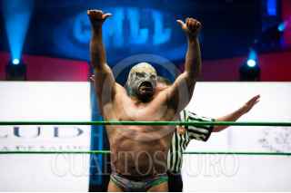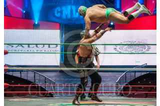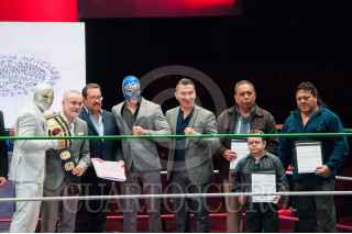 CIUDAD DE MÉXICO, 29AGOSTO2017.- Trabajadores y luchadores profesionales del Consejo Mundial de Lucha Libre (CMLL), participaron en una ceremonia de afiliación al Seguro Popular, organizada por la Comisión Nacional de Protección Social en Salud. Durante el evento, que se realizó en la Arena México, hubo una pelea entre Hechizero y El Valiente. FOTO: DIEGO SIMÓN SÁNCHEZ /CUARTOSCURO.COM
