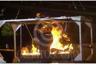 MEXDF17JULIO2004.- Al resultar mal el acto de escapismo del El mago Ednovi el doble del ilusionista salio con quemaduras al momento en que la producción prendió fuego a la caja en donde se iba a realizar el escape. FOTO:Eunice Adorno/CUARTOSCURO.COM