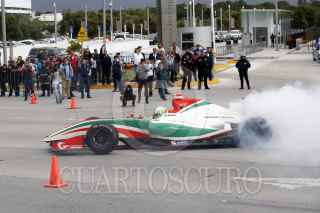 PUEBLA, PUEBLA 29AGOSTO2017.- El piloto mexicano de pruebas de Force India de la fórmula 1; Alfonso Celis, realizó una demostración frente al Museo Barroco de Puebla previo a su participación en el Road Show Puebla 2017. FOTO: HILDA RÍOS/ CUARTOSCURO.COM