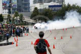 PUEBLA, PUEBLA 29AGOSTO2017.- El piloto mexicano de pruebas de Force India de la fórmula 1; Alfonso Celis, realizó una demostración frente al Museo Barroco de Puebla previo a su participación en el Road Show Puebla 2017. FOTO: HILDA RÍOS/ CUARTOSCURO.COM
