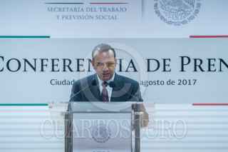 CIUDAD DE MÉXICO, 31AGOSTO2017.- Alfonso Navarrete Prida, secretario de Trabajo y Previsión Social, encabezó una conferencia de prensa para hablar sobre la situación de los trabajadores de Telmex y su posible paro nacional el próximo 1 de septiembre del año en curso. FOTO: TERCERO DÍAZ /CUARTOSCURO.COM