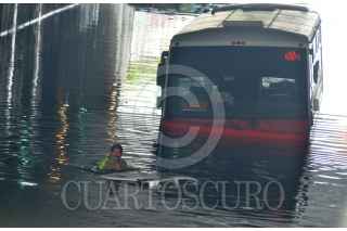 CIUDAD DE MÉXICO, 31AGOSTO2017.- Tras la fuerte lluvia de de ayer, camiones de transporte público amanecieron inundados bajo el puente de la avenida Canal de Río Churubusco y la avenida Pantitlan. FOTO: ARMANDO MONROY /CUARTOSCURO.COM