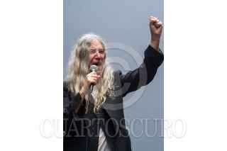 CIUDAD DE MÉXICO, 01SEPTIEMBRE2017.- La cantautora Patti Smith presentó su intervención al proyecto de arte urbano Sonora 128 y las Sesiones del Café La Habana, durante una conferencia de prensa en la galería Kurimanzutto. FOTO: ISAAC ESQUIVEL /CUARTOSCURO.COM
