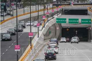 CIUDAD DE MÉXICO, 02SEPTIEMBRE2017.- Un radar alerta a los conductores sobre la velocidad a la que conducen en el Deprimido Mixcoac. FOTO: ISAAC ESQUIVEL /CUARTOSCURO.COM