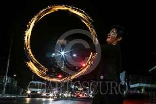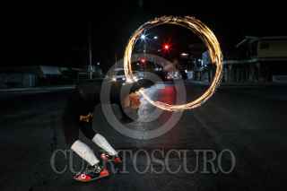 CAMPECHE, CAMPECHE, 03SEPTIEMBRE2017.- El payaso "Pochi Toque" realiza un acto con fuego en el semáforo de la gobernadores, con el fin de ganarse unos cuantos pesos para llevar a su hogar. FOTO: MARTIN ZETINA /CUARTOSCURO.COM