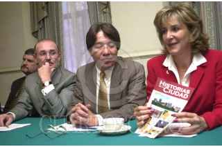 MEXDF27JULIO2004.- Fernando Shutte, Jaime Caiballo y María Elena Morera organizadores de la marcha en contra de la inseguridad ofrecieron una conferencia de prensa para dar a conocer los diálogos que han tenido con el gobierno federal con motivo de sus propuestas en contra de la delincuencia. FOTO: Eunice Adorno/CUARTOSCURO.COM