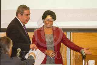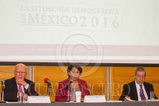 CIUDAD DE MÉXICO, 05SEPTIEMBRE2017.- Patricia Chemor Ruiz, secretaria del Consejo Nacional de Población, y Humberto Roque Viallanueva, subsecretario de Gobernación, durante la presentación del libro "Situación demográfica de México 2016". FOTO: ISAAC ESQUIVEL /CUARTOSCURO.COM