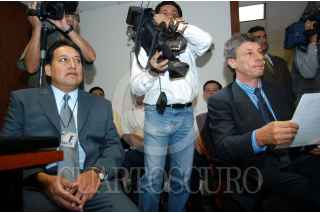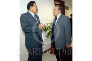 MEXDF12AGOSTO2004.- Juan Guillermo Ramos, fiscal de Asuntos Especiales de la PGJDF y Alvaro Elias, diputado panista conversan antes de la reunión de la seccion instructora de la camara de diputados, se presentaron. FOTO: Germán Romero/CUARTOSCURO.COM