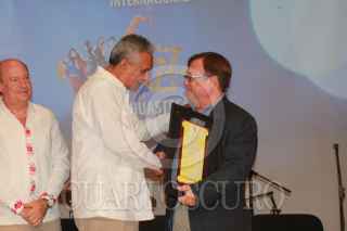CIUDAD VALLES, SAN LUIS POTOSÍ, 07SEPTIEMBRE2017.- Durante la inauguración del Festival Internacional de Jazz Julián Santandreu se entregó el nombramiento de huésped distinguido al Embajador de Argentina en México, Daniel Chuburu, por parte del presidente municipal Jorge Terán. FOTO: MARCELO PALACIOS /CUARTOSCURO.COM