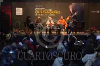 CIUDAD DE MÉXICO, 07SEPTIEMBRE2017. Gabino Palomares cantó algunas de sus canciones durante su presentación editorial Cien Canciones de Amor y Patria. FOTO: TERCERO DÍAZ /CUARTOSCURO.COM